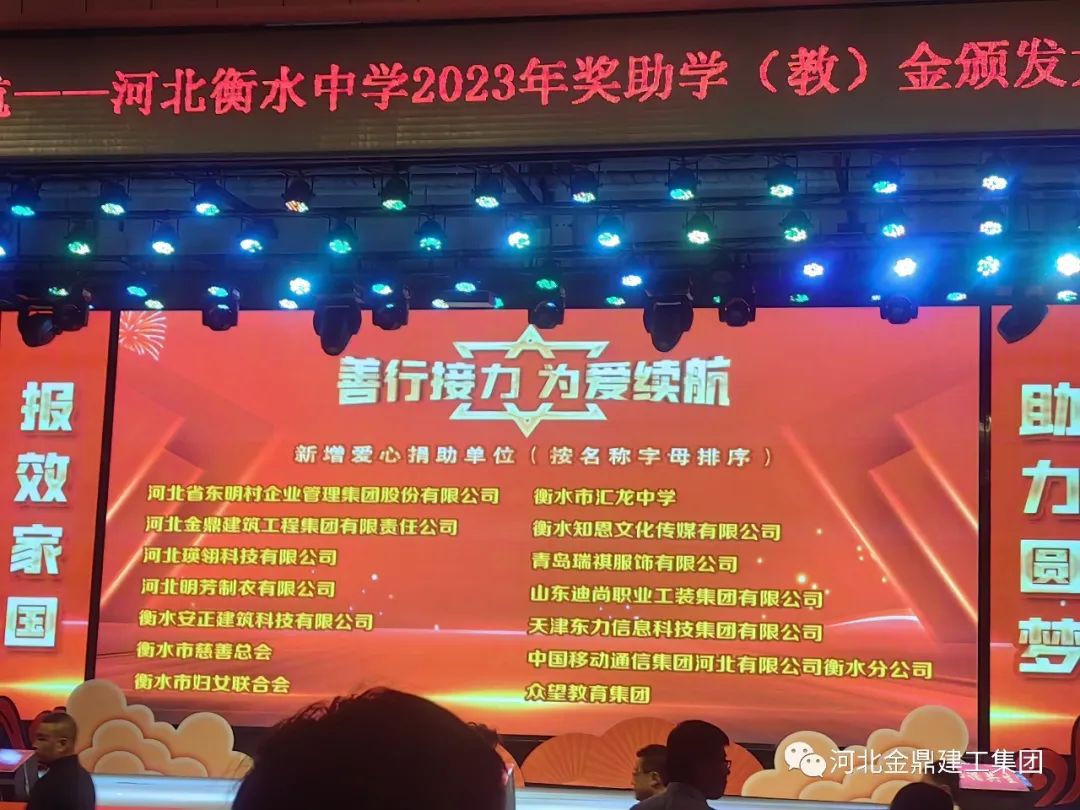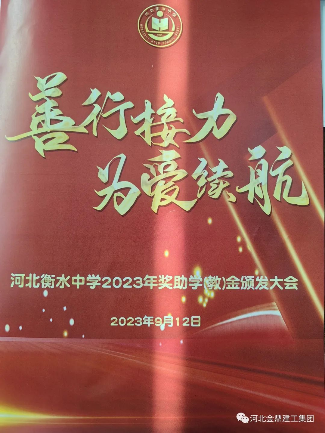 金鼎集團祝賀河北衡水中學2023年獎學金助學(教)金頒獎大會圓滿結束!